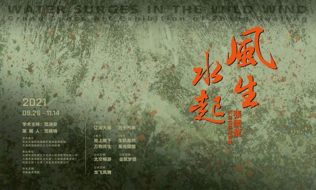 2021年9月26日,“风生水起——张国龙大型空间艺术展”开幕仪式在天津滨海美术馆隆重举办。此次展览由中国美术家协会主席、中央美术学院院长范迪安担任学术主持,著名艺术评论家范晓楠担任策展人。展览分为辽阔大地、气象万千、地上地下、万物共生、生机盎然等七个部分,展出张国龙先生作品百余件,通过架上绘画、装置、文献、影像等形式综合呈现,此次展览既是对张国龙先生四十余年艺术创作的一次巡礼,又是对其未来艺术创作蓬勃生命力的开启。据悉,展览将持续至11月14日。